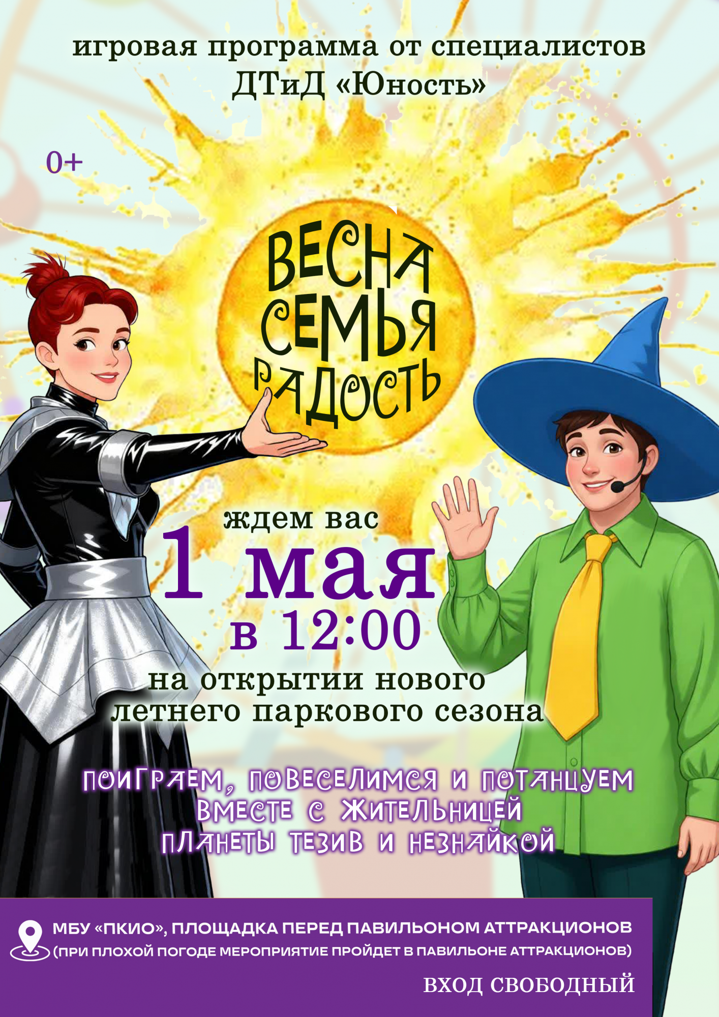 Мы подготовили для вас яркую, весёлую и незабываемую игровую программу «Весна. Семья. Радость»! Будет много смеха, игр, сюрпризов и отличного настроения для всей семьи.