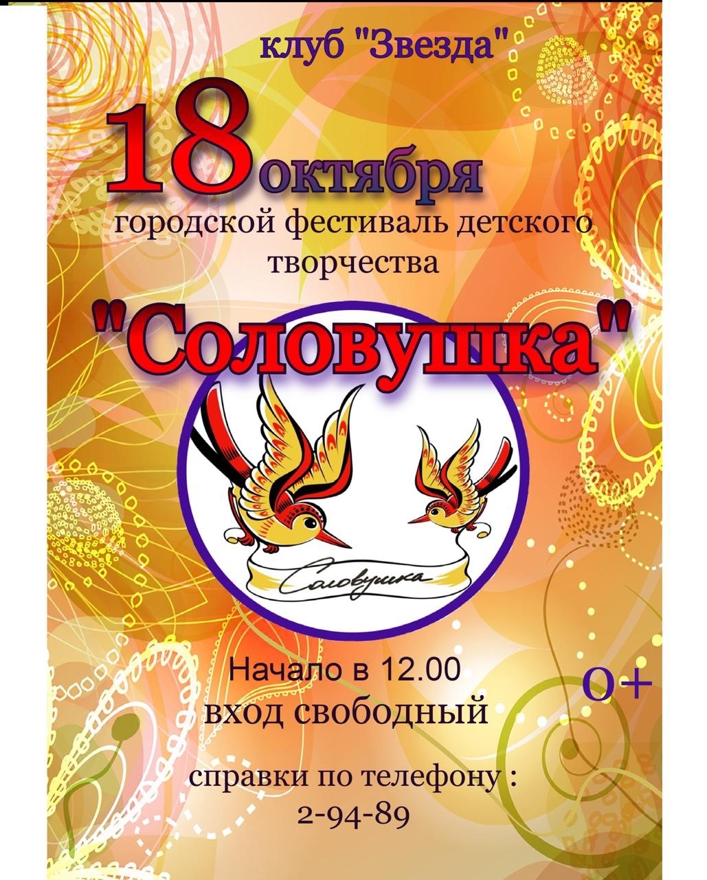 Друзья, приглашаем принять участие в традиционном городском фестивале детского творчества «Соловушка» детские и юношеские творческие коллективы, а также семейные коллективы и отдельных исполнителей.