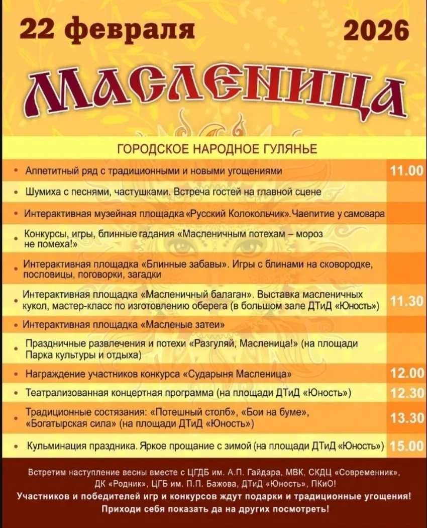 УЖЕ В ЭТО ВОСКРЕСЕНЬЕ! 22 февраля, приглашаем на городское народное гуляние «Масленица»!
