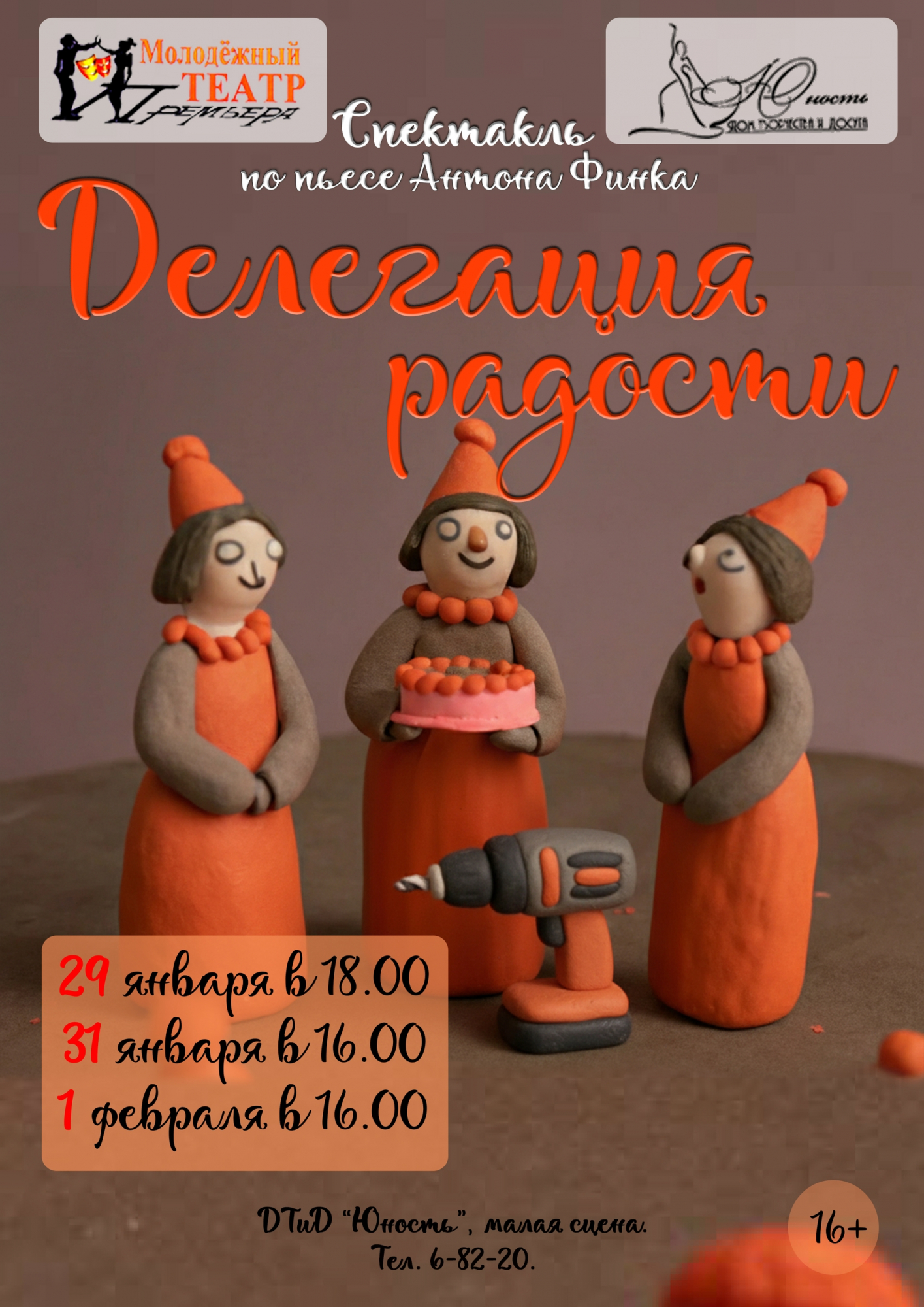В день 20-летия народный молодёжный театр «Премьера» приглашает на «Делегацию радости» (16+)– добрую и лёгкую комедию по пьесе Антона Финка о встрече трёх подруг на Дне рождения у четвёртой. Весёлые диалоги, яркие персонажи и непредсказуемые повороты сюжета!