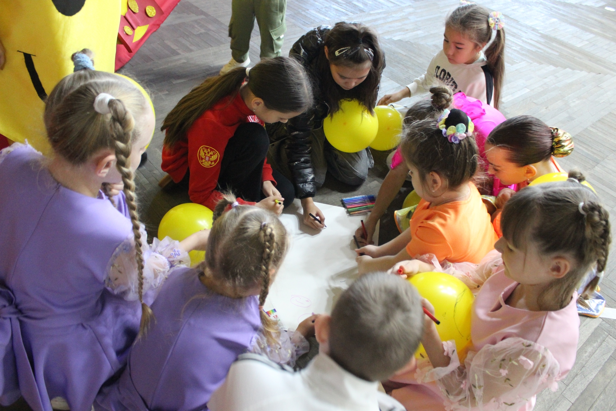 Юные гости играли, веселились, делали "смайлики", танцевали с хореографическим коллективом «Виктория» (рук. С.И. Кусова) и подпевали вокальному коллективу «Фантазия» (рук. Т.В. Коваленко). Все желающие могли принять участие в творческих мастер-классах и сделать памятные кадры в фотозоне.