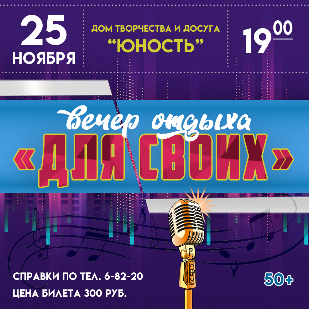 25 ноября в 19:00 приглашаем всех желающих на вечер отдыха "ДЛЯ СВОИХ" !