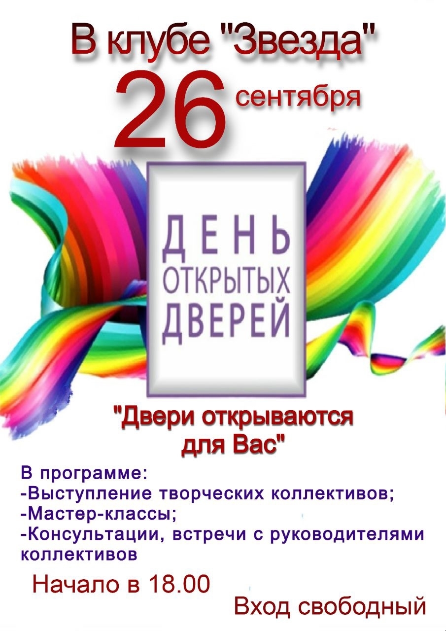 Ждем всех желающих 26 сентября в 18:00 в клубе «Звезда»!