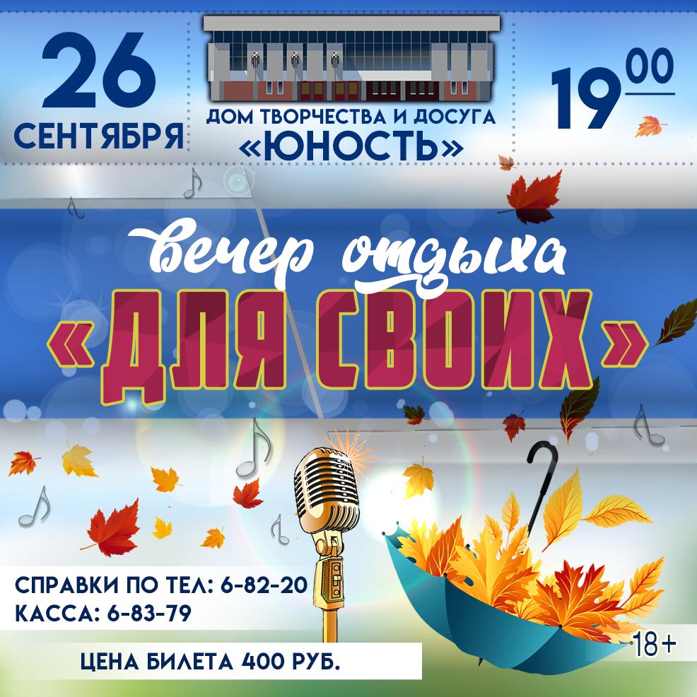 26 сентября в 19:00 приглашаем всех желающих на вечер отдыха «ДЛЯ СВОИХ»