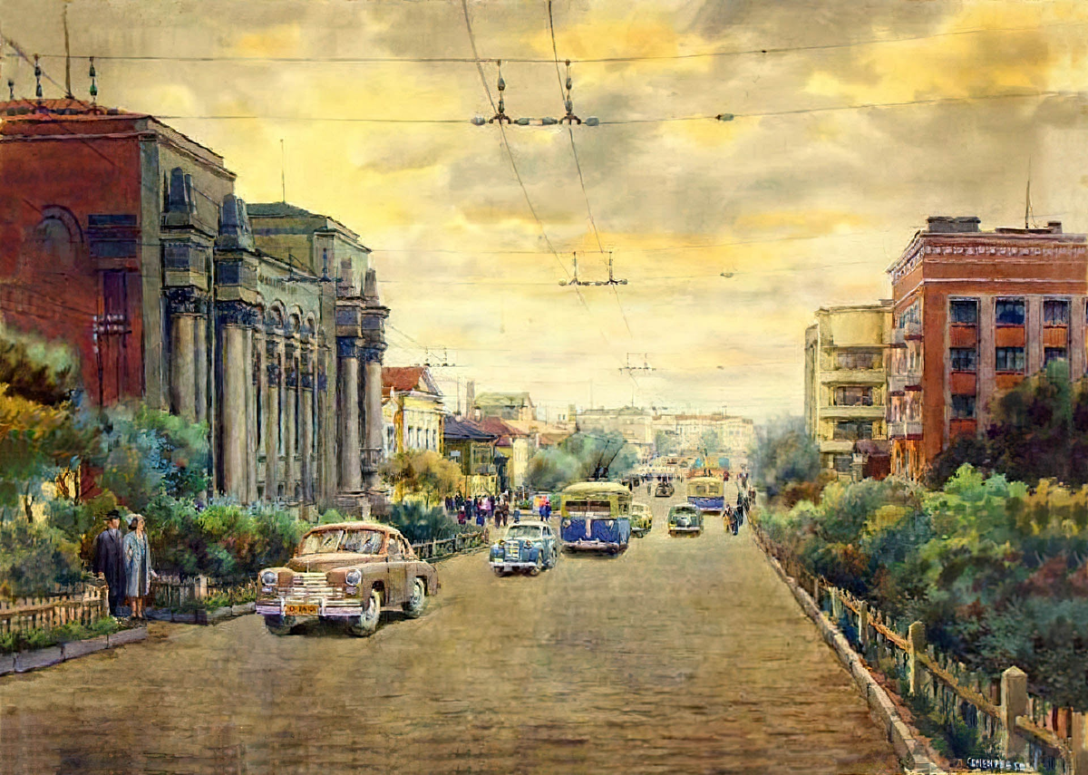 Одна из них даже ожила — «Улица Карла Либкнехта в Свердловске» Бориса Семенова, написанная как раз в 1950-е годы.