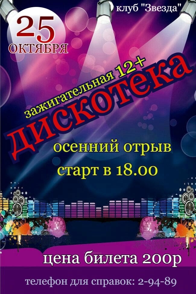 Главная / Новости / Клуб «Звезда» приглашает всех желающих на зажигательную дискотеку!