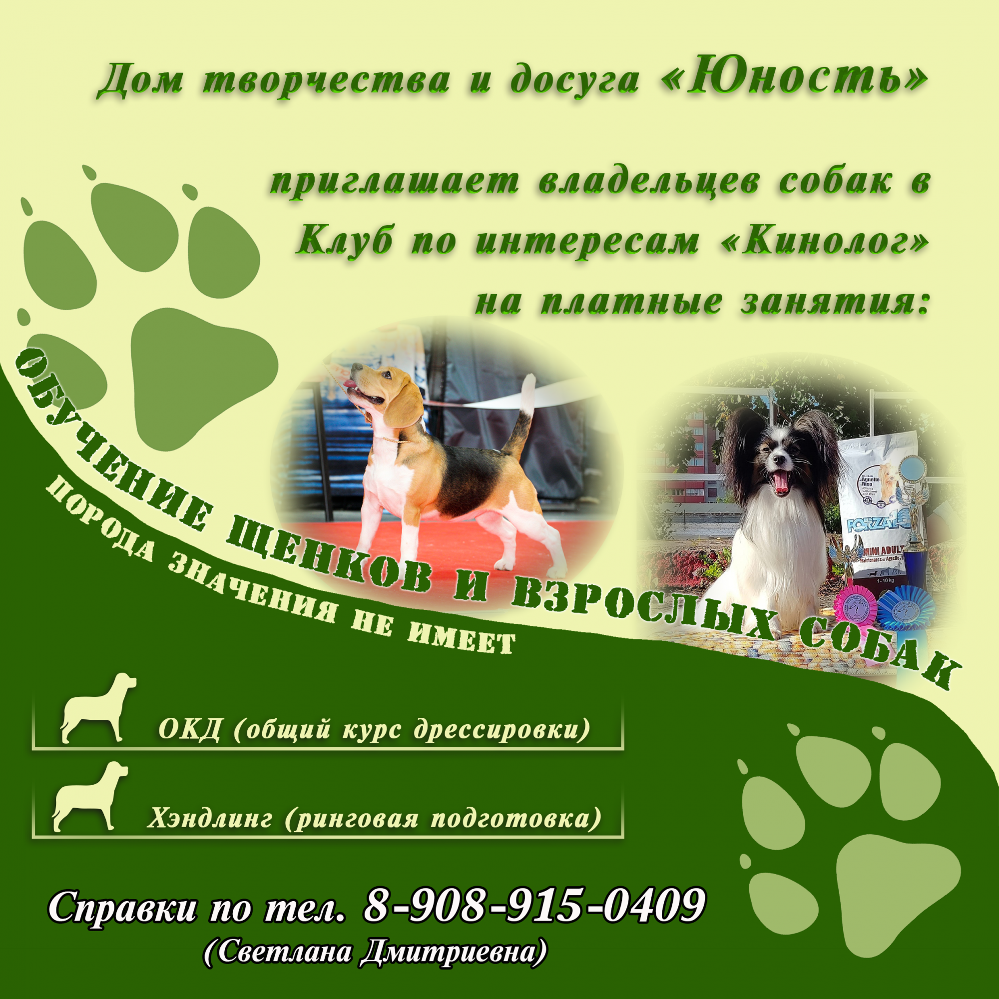 Открываем набор в Клуб по интересам «Кинолог» на занятия по дрессировке: