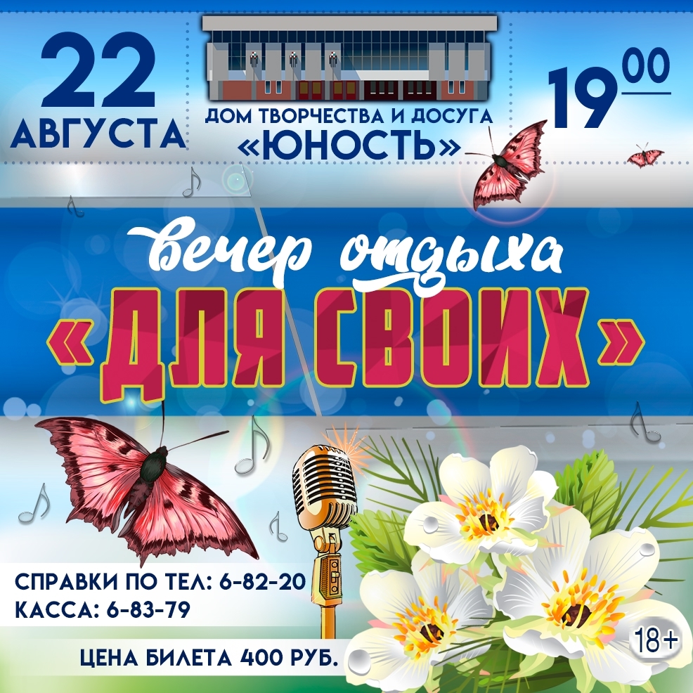 22 августа в 19:00 приглашаем всех желающих на вечер отдыха «ДЛЯ СВОИХ»