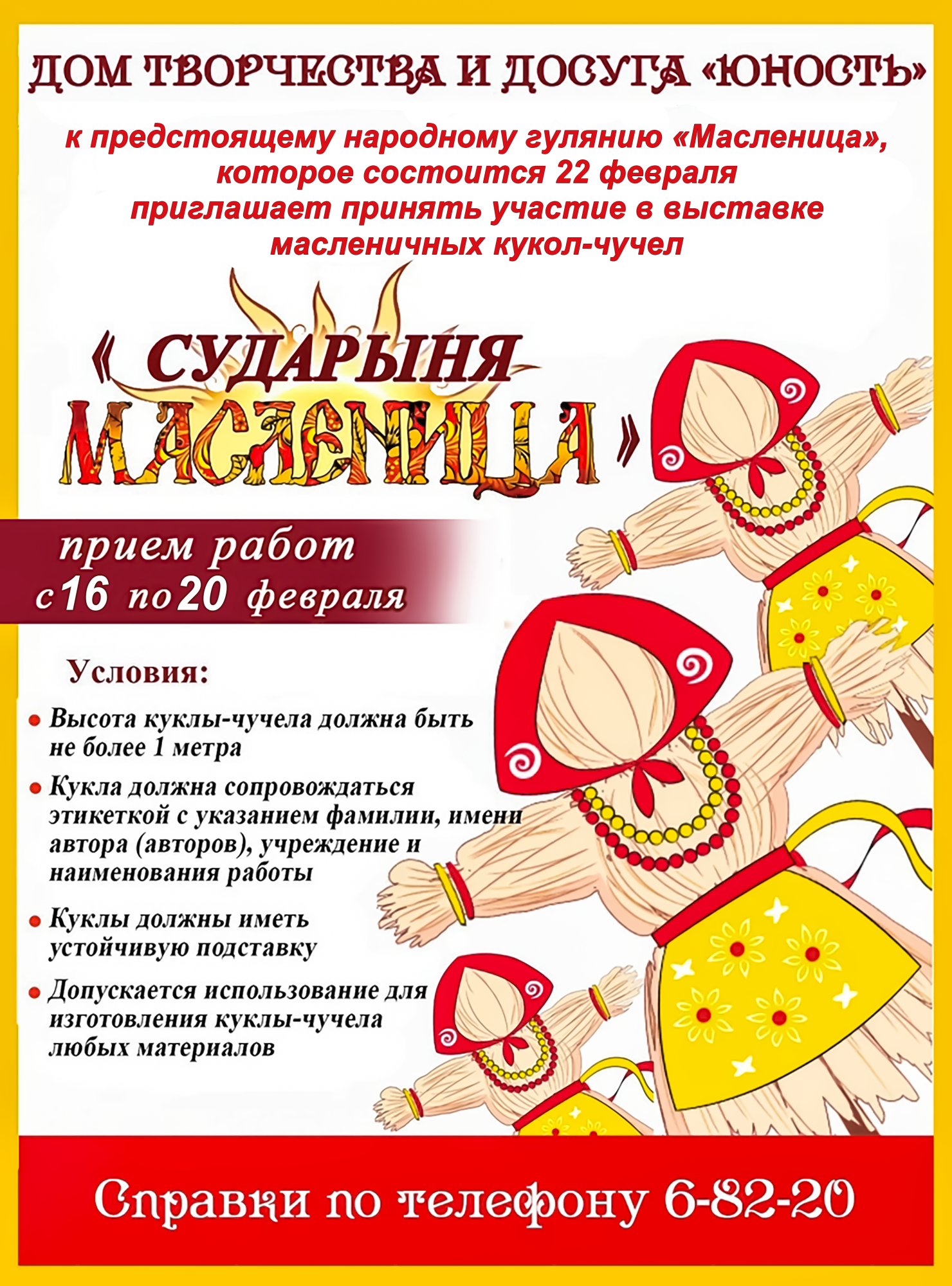 Друзья! Давайте встречать весну вместе! Приглашаем всех желающих принять участие в выставке масленичных кукол-чучел «СУДАРЫНЯ МАСЛЕНИЦА».