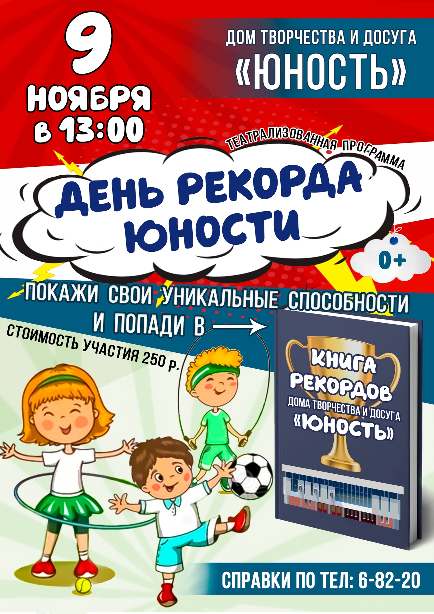 Приглашаем юных героев на яркую театрализованную программу «День рекорда Юности»!