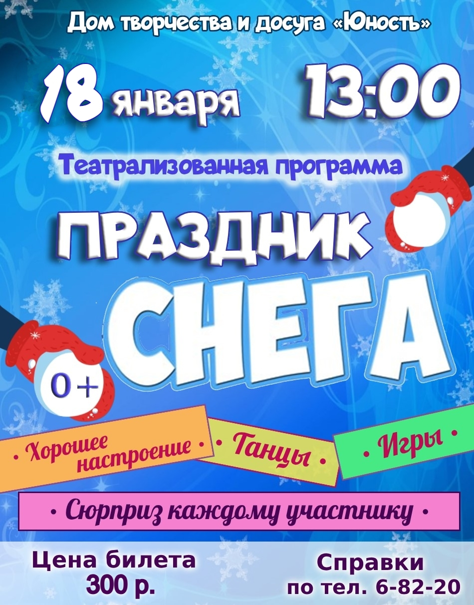 ❄ Внимание! ⛄ 18 января в 13.00 мы ждём вас на Театрализованной программе «ПРАЗДНИК СНЕГА»!
