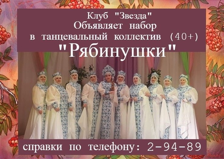 Танцевальный коллектив «Рябинушки» (клуб «Звезда») приглашает взрослых от 40 лет!