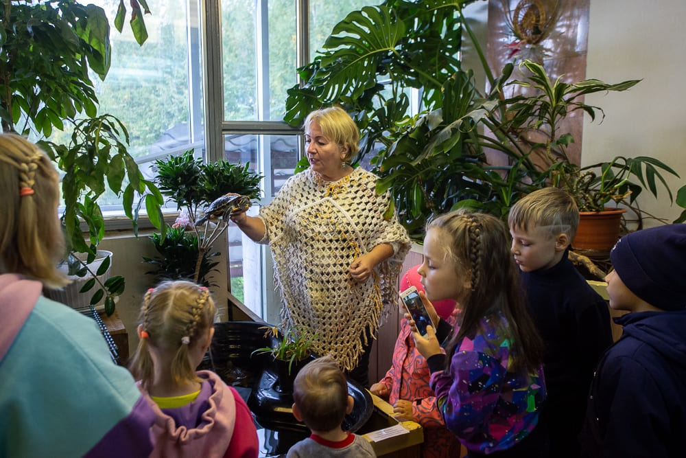 Посетители смогли побывать на обширной экскурсии по саду, где произрастают сотни видов и сортов комнатных растений. Взрослые и дети поближе познакомились с обитателями живого уголка: ёжиком Чих-пыхом