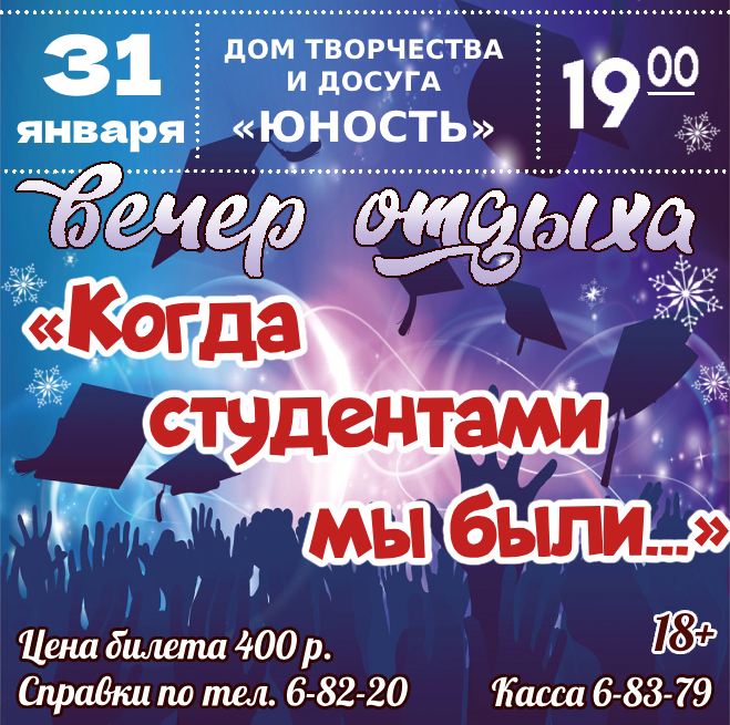 31 января в 19:00 приглашаем всех желающих на вечер отдыха «Когда студентами мы были...»